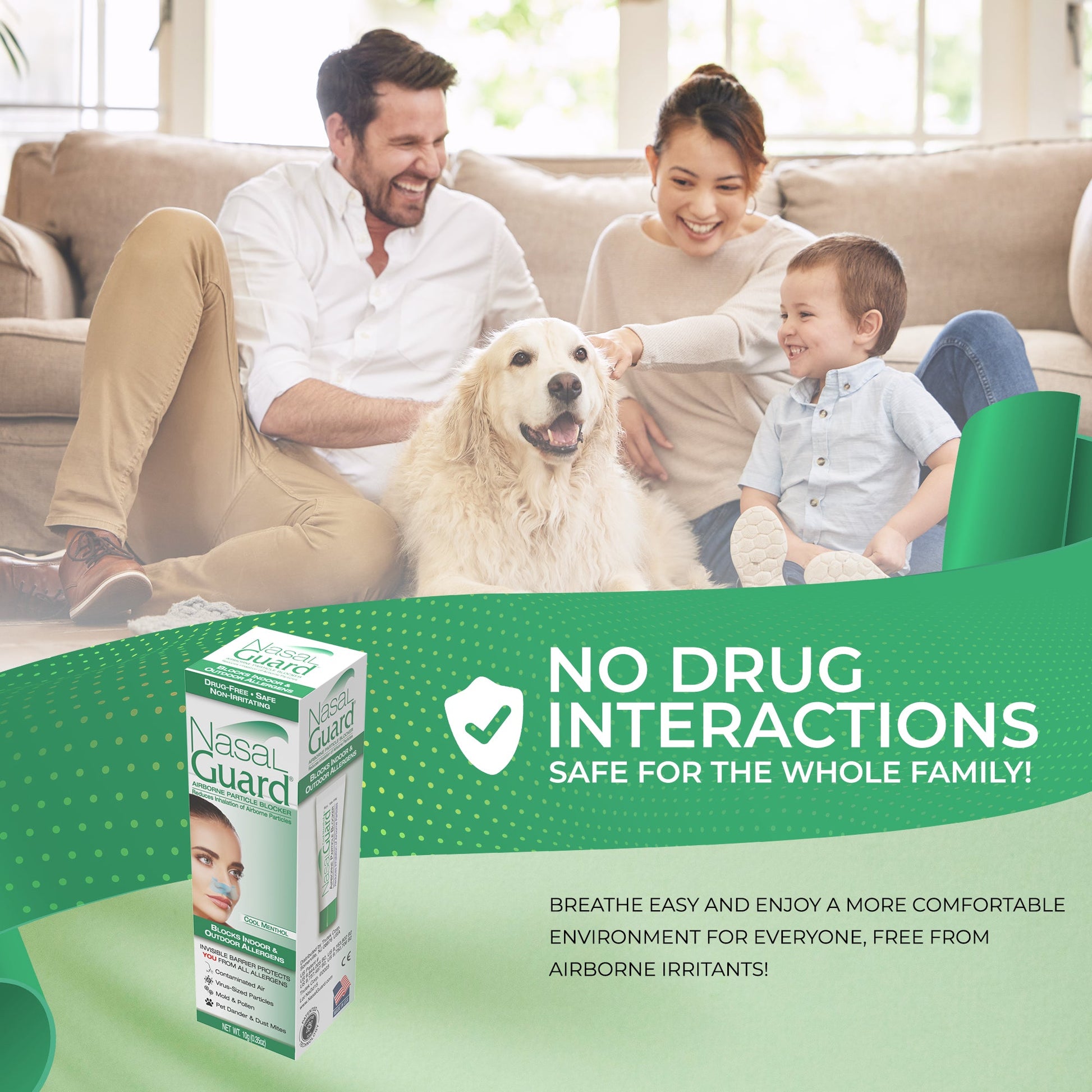 - PARA TODA LA FAMILIA: NasalGuard es seguro para toda la familia y no tiene interacciones conocidas con medicamentos. Ya seas niño, adulto o mayor, puedes usarlo con confianza en cualquier momento del día. Siéntete tranquilo sabiendo que NasalGuard no interfiere con otros medicamentos que estés tomando.