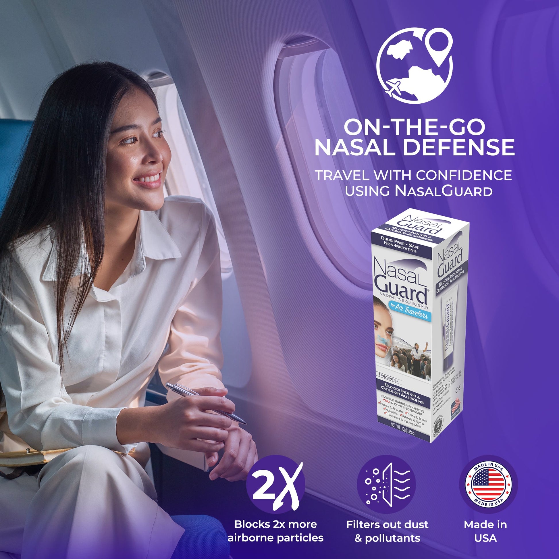 - HECHO EN ESTADOS UNIDOS: NasalGuard para viajeros aéreos se elabora con orgullo y meticulosidad en los Estados Unidos, cumpliendo con los más altos estándares de calidad. Con este gel nasal premium, puedes viajar con confianza, sabiendo que durante tu vuelo tendrás una protección confiable contra los alérgenos, lo que fomenta una experiencia de respiración más cómoda donde sea que vayas.