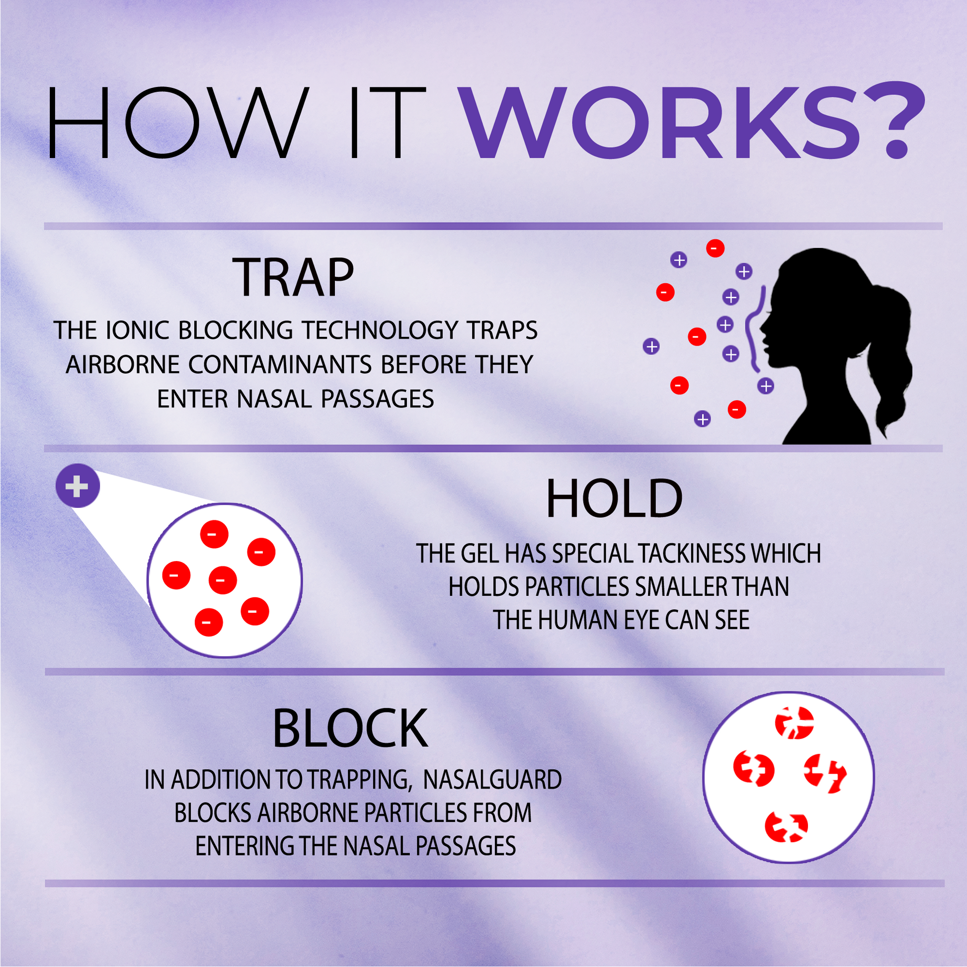 - APLICACIÓN SENCILLA: Aplicar NasalGuard es muy fácil. Solo necesitas una gota de este avanzado gel nasal alrededor de las fosas nasales y el labio superior para crear una barrera protectora que evita la entrada de miles de partículas en el aire. Es una solución práctica y conveniente para una protección prolongada contra los alérgenos.